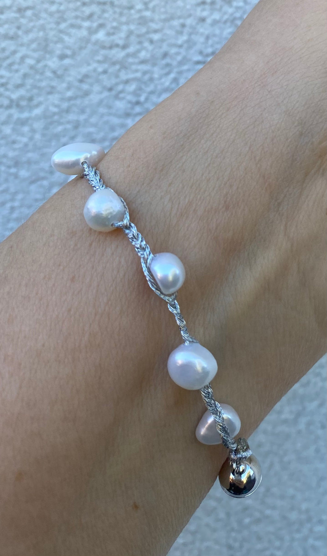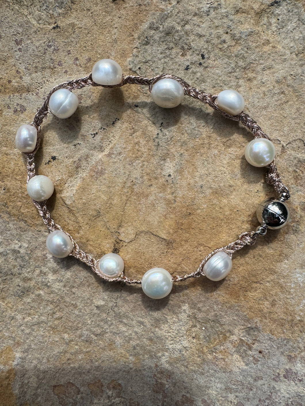 The crochet bracelet using special cotton-cord and fresh water pearls is simply beautiful and dainty.