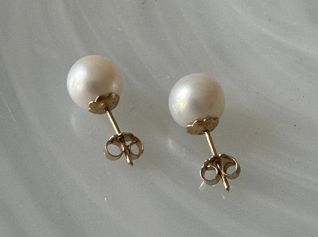 The Akoya pearl earrings are a timeless classic pair of studs in solid gold for everyday wear. Dimensions of Akoya pearls 8mm.