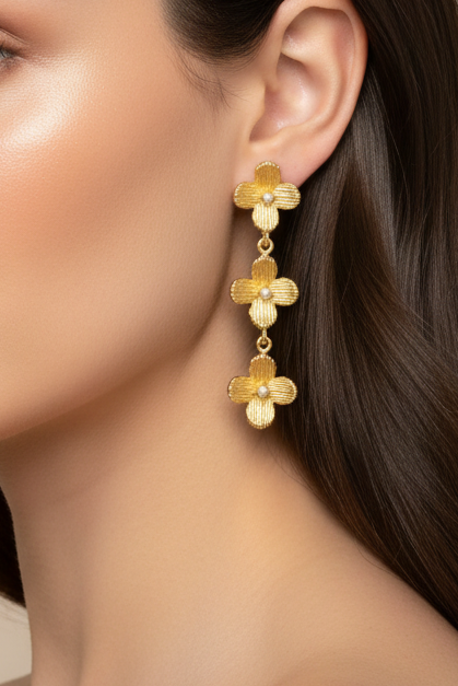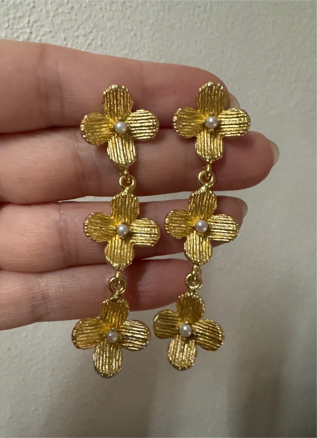 The Stavrous Keshi earrings are bold and beautiful. 18k brushed vermeil over brass. The stud pin is gold vermeil over sterling silver. Length 60mm.