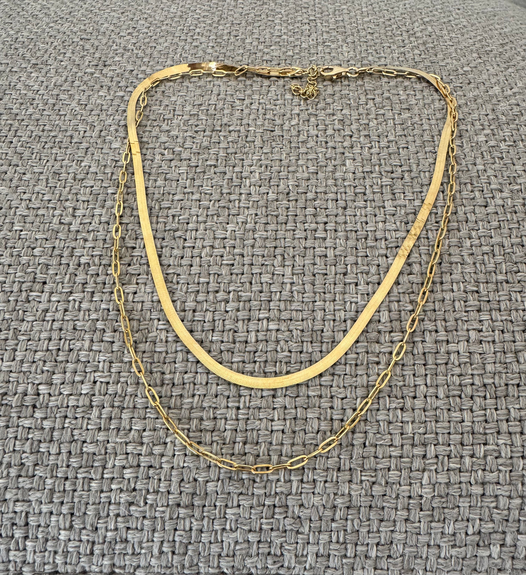 The herringbone chain necklace is gold vermeil over sterling silver. Simple, timeless and chic. Wear this beautiful chain solo or layer it with more necklaces. 40cm in length.