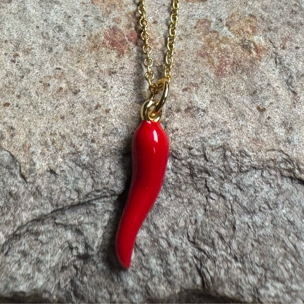 The red cornice Italian necklace is petite and beautiful. Total dimensions including nail ring 20mm. All 14k gold vermeil over sterling silver. Length of cable chain 45m with a shortening ring at 42cm.